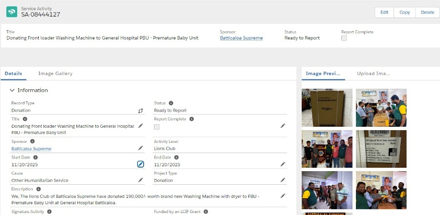 We, The lions Club of Batticaloa Supreme have donated 190,000/- worth brand new Washing Machine with dryer to PBU - Premature Baby Unit at General Hospital Batticaloa.