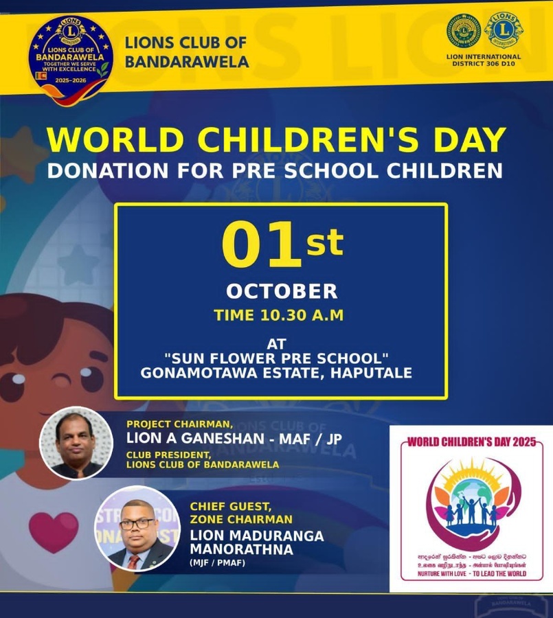 Project 3 /WORLD CHILDREN’S DAY PROJECT – COMPLETED SUCCESSFULLY The Lions Club of Bandarawela, District 306 D10, proudly organized a special community service project to commemorate World Childre...