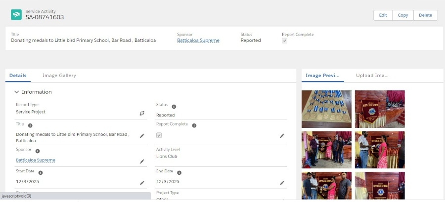 We the lions club of Batticaloa Supreme have Donated 26 nos Medals to Little Bird Primary school, Bar Road for their Ozhi Vizha function