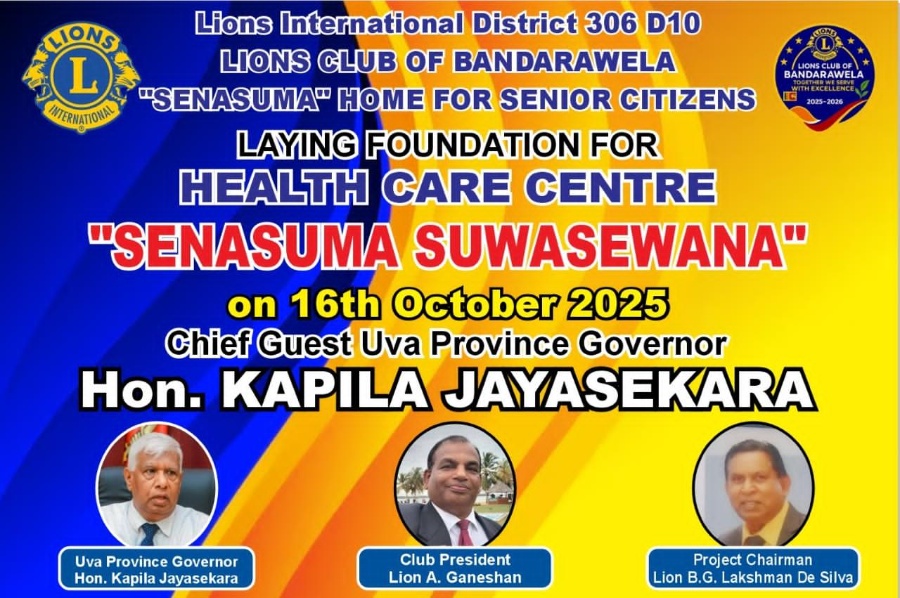 Name of the Project: Laying of Foundation Stone for the Proposed Sick Room (Hospital) Building – “Senasuma Suwasewana” Health Care Centre Project Venue: Lions “Sanasuma” Elders Home, Amunudo...