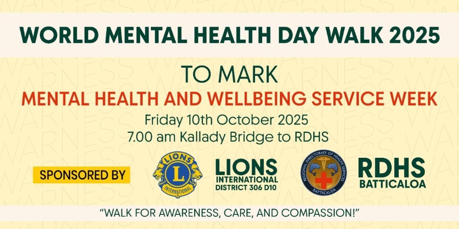 The Lions Club of Valaichenai Town 306 D 10, in collaboration with the Mental Health Unit of the Valaichenai Base Hospital, organized a World Mental Health Day awareness rally. The rally commenced fro...