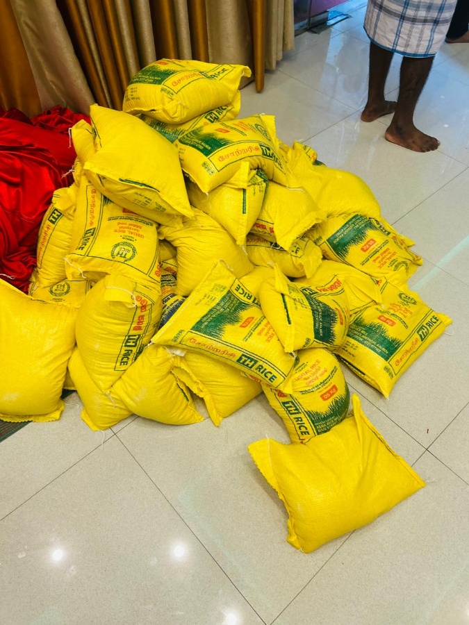 Providing dry rations to flood affected people in Paddapuram