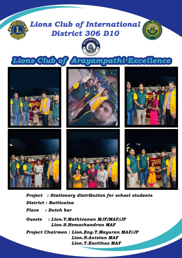 Distribution of School kits for needy Students Location Navalady , Batticaloa Special Guests: Lion Mathivanan, MJF/MAF/JP - Zone chairman Lion Hemachandran, PMAF Cabinet Officer Project Chairman...